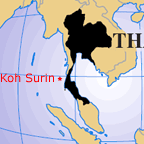 To visit most of the reefs around the main island you hire a longtail boat. A longtail is a wide, canoe-like wooden boat operated by an outboard motor with an outrageously long propeller shaft that can be oriented in almost any direction, making it possible to maneuver around obstacles and in shallow water. The engine noise can be oppressive in a narrow inlet, but otherwise is tolerable. In the Surin park, the longtails do not have any sun protection, so it is very important to wear sunscreen or protective clothing. Because the boat is open to rain and spray, and returning snorkelers will tend to drain into the bottom, possessions that cannot get wet should be in a sturdy plastic bag, or two. Don't wear your good shoes either: in some cases you will be climbing in and out of the longtail into about a foot of water, or a little more if the boat has drifted back from where it was run into the sand.