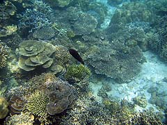 After a leisurely 60km ferry ride, lugging our bags up to our cabins, and enjoying a little lunch, we were ready to head out on the water. The first afternoon, we visited Ao Mae Yai, on the East side of Koh Surin Nua (the island on which we were staying), and Ao Mai Ngam, on the West side. Motoring along in our longtail boat on a glorious, sunny afternoon, it was a great time. And we saw quite a few fish, too. (All photos are from Ao Mae Yai except the last one.)